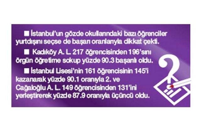 Öğrenci, öğretmen ve okul sayısıyla Türkiye nin eğitim başkenti kabul edilen İstanbul'un 2011 yılı üniversiteye giriş sınavlarındaki başarı durumu da, tartışılan lise eğitimiyle ilgili Türkiye fotoğrafını ortaya çıkardı. İstanbul'daki liseler Türkçe, Matematik, Fen ve Sosyal Bilimler de soruları doğru cevaplama oranlarında Türkiye ortalamasını bazı testlerde geçse de özellikle örgün eğitim veren bölümlere yerleşmede hayal kırıklığı yarattı. İstanbul'daki 917 farklı lise türünde okuyan çocuğun sınav başarısı incelendi.