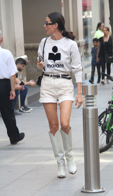 Yasemin Özilhan, çizmeleri ve kısa şortuyla dikkat çekti.