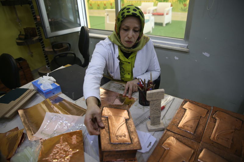 Şanlıurfa Büyükşehir Belediyesince açılan kokulu taş kursuna katılan yaşlı ve engelliler, 12 bin yıllık geçmişiyle dünyanın bilinen en eski yerleşim yeri kabul edilen Göbeklitepe'deki kazılarda ortaya çıkarılan yabani hayvan figürlü "T" biçimli dikili taşlardan esinlenerek hediyelik eşya hazırlıyor.