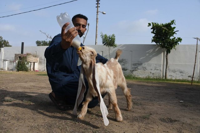 Pakistan'ın Karaçi kentinde 2 ay önce dünyaya gelen Simbi isimli yavru keçi, uzun kulaklarıyla dünya çapında ilgi görüyor