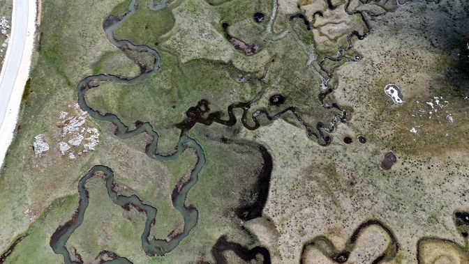 Meralardaki menderesler yaylanın manzarasına renk katarken, ortaya çıkan güzellik dron ile görüntülendi.