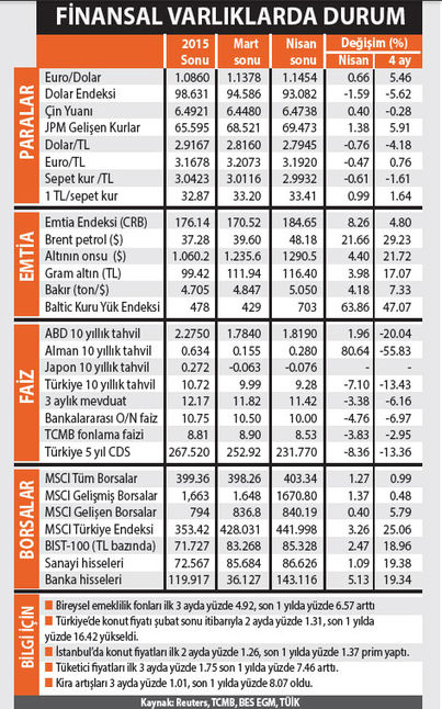 -Dolardaki son düşüş Yen’in değer kazanmasından ve bizzat doların kendi kaybından kaynaklandı. Dolar Endeksi nisan ayında yüzde 1.6, yılın ilk dört ayında yüzde 5.6 değer kaybetti. Gelişmekte olan ülkeler kurlarına karşı da dolar yüzde 5.9 değer yitirdi. Halbuki TL’ye karşı değer kaybı yüzde 4.2 ile bu ortalamanın altında. Yani doların TL karşısında 2.80 uzanmasının gerisinde iç nedenlerden daha çok dış nedenler rol oynuyor.