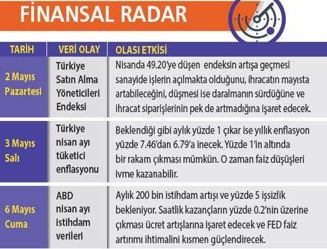 -Avrupa Merkez Bankası’nın toplantısı 2 Haziran’da. Yeni bir durum yok. Ama Euro’nun değerlenmesini durdurmak için Mario Draghi şapkadan tavşan çıkarmayı deneyebilir. Asıl ay ortasında toplanacak FED’in kararı daha önemli olacak. Faiz artırım ihtimali şimdilik düşük. O zamana kadar açıklanacak verilerin çok iyi gelmesi durumunda ancak gündeme gelebilir. Ama yapacağı açıklama veya açıklamalarla faizin geleceğinin ne olacağını de belirleyebilir.