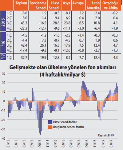 Bitişikte gelişmekte olan ülkelere yönelik sermaye akımlarından görülebileceği gibi, kasım ve aralık aylarındaki sermaye çıkışları yeni yılla birlikte sermaye girişlerine döndü. Oldukça da güçlü ve geçen yılın üçüncü çeyreğinden sonraki en yüksek sermaye girişi bu yılın ilk çeyreğinde yaşandı. Nisan ayında da süren sermaye girişlerinin biraz daha devam etme gücü olabilir.