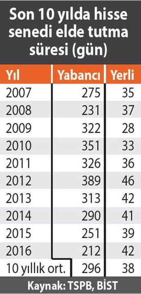 - Ancak bizde öyle bir piyasa yok. Bizde olanın vadesi 42 gün. Halbuki bankalara yatırılan paranın ortalama vadesi bile 66 gün. Yerli yatırımcıların hisse senedi elde tutma süresi ortalama 42 gün. 42 günlük bir piyasadan uzun vadeli fonlama çıkmaz.