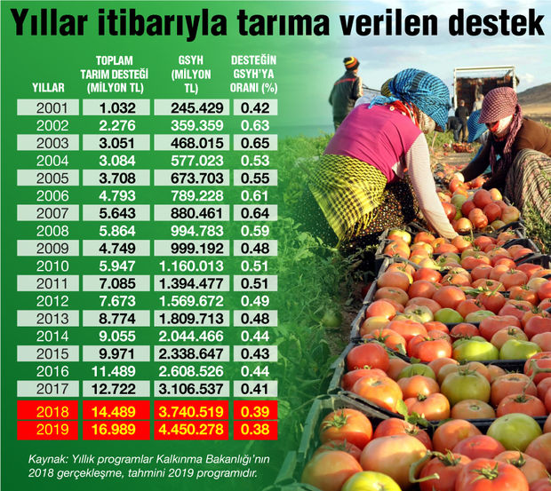 Savunma sanayinden de önemli diye tanımlanan tarıma verilen teşvikler son 20 yılın en düşük düzeyine indi
