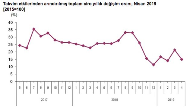 - Ciro endeksleri ise yüzde 13.2 arttı. Ancak son bir yıllık enflasyon dikkate alındığında, ciro endeksinin de gerçekte perakende satış azalması civarında azaldığı söylenebilir.