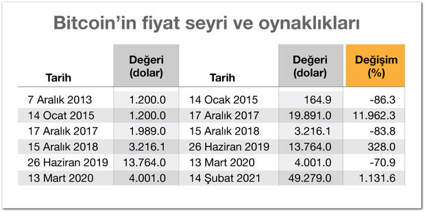-Sondan başlayarak gidelim. Dün ulaşılan 49.279 dolarlık düzeye hareket 13 Mart 2020’de 4.001 dolardan başladı. 11 aylık artışın oranı yüzde 1.132’ye ulaştı. Çok yüksek bir getiri. Kopan gürültü de bundan zaten.