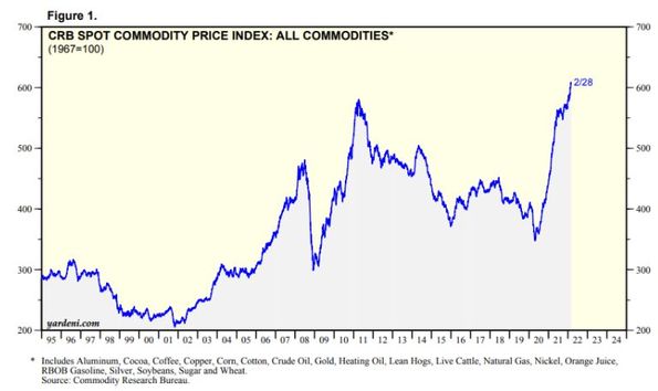 ➔ Bu nedenle bütün emtia fiyatları yükselişte. Emtia endekslerinden CRB son haftada yüzde 5.1, yıl başından beri yüzde 21 arttı. Bloomberg Emtia Endeksi de bir haftada yüzde 5.1 ve yılbaşından beri yüzde 20 artı kaydetti.