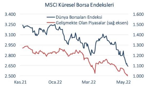 ➔Dünya borsalarının toplamının 4 Ocak 2022’den bu yana kaybı MSCI endeksiyle yüzde 17’ye vardı. Oran gelişmekte olan borsalarda yüzde 20.5 ile biraz daha fazla.