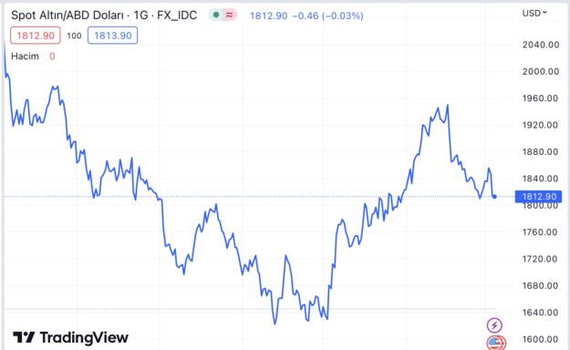 ➔ ABD hazine faizlerinin yükselmesi yanında doların kuvvetlenmesi en çok altını düşürdü. Ters korelasyonun etkisiyle altının onsu 1.846 dolardan 1.815 dolara indi ve yüzde 1.7 düştü.