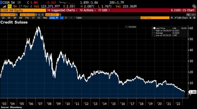 ➔2007 yılında 90 milyar dolarlık piyasa değerine ulaşan 167 yıllık Credit Suisse bankası cuma günü borsada 7.4 milyar dolara kadar inmişti.