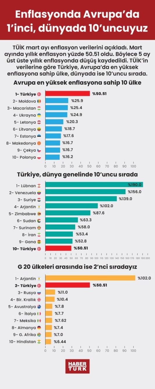 ➔Dün açıklanan mart ayı verileri ile bu gerileme beş ayını geride bıraktı ve TÜFE yüzde 50.5’e, ÜFE yüzde 62.4’e indi.