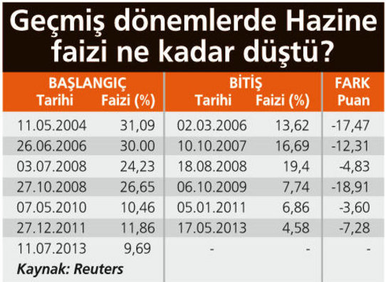 Dünden başlayarak Hazine'nin düzenlediği yüklü ihalelerde faiz oranları düştü. Türkiye Hazinesi daha düşük bir faiz oranı ile borçlandı. İkinci el piyasada Hazine faizleri bir günde yarım puan geriledi. Döviz kuru düşüşe geçti. Borsa yükseldi. Finansal piyasaların tansiyonu düştü.