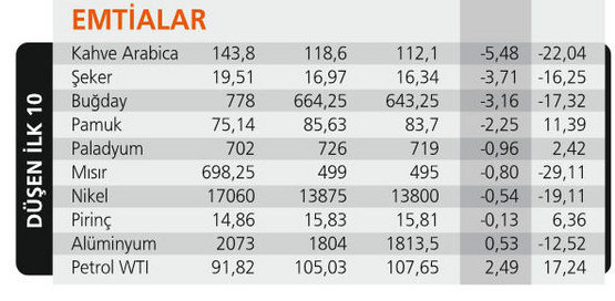 BORSA KAYIPTA BİRİNCİ: Türkiye piyasaları içinde en olumsuz etkilenen hisse senedi piyasası. Son iki haftalık düşüşün etkisiyle BIST-100 ağustos ayında yüzde 9.52 ile dünya borsaları arasında en fazla aylık değer kaybına uğrayan piyasa oldu. Onu diğer gelişmekte olan piyasalar izledi. Değer kaybında ilk 10 arasında gelişmiş piyasa endeksi olarak sadece Dow Jones 8. sırada yer alıyor. Yılın 8 aylık döneminde de Türkiye yüzde 15.5 kayıpla 7. sırada yer alıyor. Bu kez ilk 10 içinde gelişmiş borsa hiç yok, tümü gelişmekte olan piyasa.