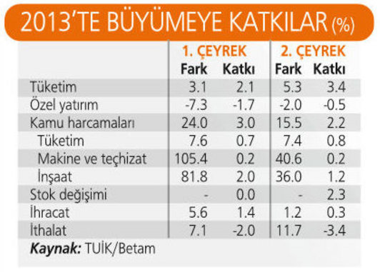 ■ İç talep 2012'de daralmasından sonra bu yılın ilk çeyreğinde canlandı, ikinci çeyrekte canlanma daha arttı. Üçüncü çeyrekte de aşağı yukarı sürdü.