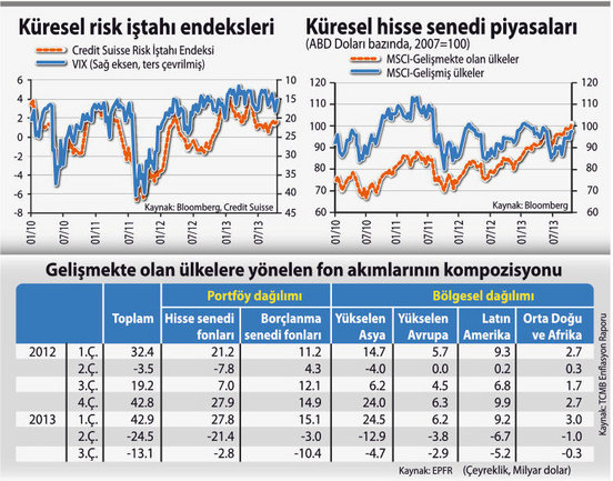 SIKI DURUŞUN NEDENİ: Sıkı duruşun bir nedeni enflasyon olsa da, bir nedeni de FED in izleyeceği para politikasındaki belirsizlik, buradan kaynaklanacak risklerin azaltılması gereği. Tahvil alım miktarının azaltılmasına ne zaman başlanacağı yanında azaltılacak miktarın belirsizliği, küresel piyasalarda dalgalanmaya, gelişmekte olan piyasalardan tersine sermaye hareketlerine yol açıyor. Banka "Küresel düzeyde para politikalarına ilişkin belirsizliklerin artış göstermesi halinde bunun küresel likidite, sermaye akımları ve finansal varlıkların fiyatlanması açılarından etkileri gözlenebilecek. Böyle bir durumda gelişmekte olan ülkelere yönelik sermaye akımları zayıf seyretmeye devam edebilecektir" dedi.