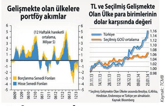 ■ Gezi olayları ve 17 Aralık operasyonu da Türkiye'yi negatif yönde ayrıştıran bir rol oynadı. Nitekim yukarıda görüldüğü gibi, TL diğer gelişmekte olan piyasa kurlarından negatifyönde ayrıştı.