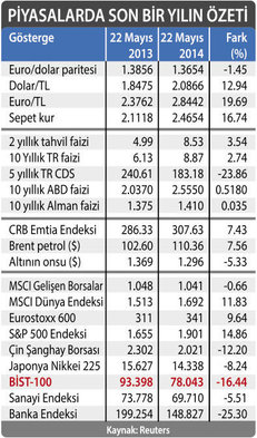 Son küresel krizde finansal piyasaların üçüncü büyük dalgalanmasının tetiklendiği 22 Mayıs'ın yıldönümünü geride bıraktık. Dolayısıyla piyasalar da son bir yıl içinde ciddi oynaklıklar gösterd i. Gelişen piyasalar negatif ayrılırken ve bir ara yüzde 16'ya kadar varan bir kayıp yaşadı ama ardından kısmen toparladılar ve birinci yılı sadece yüzde 0.66 düşüşle tamamladılar.