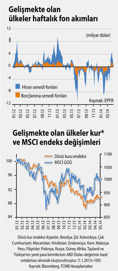 Bitişikte yer alan veriler geçen hafta yayımlanan Merkez Bankası'nın Finansal İstikrar Raporu'dan alındı. Gelişmekte olan ülkelere yönelik fon akımlarının seyri, bu ülkelerin döviz kuru ve borsalarının performansı görülüyor. Sermaye çıkışının bu piyasaları dalgalandırdığını, son dönemde olduğu gibi, sermaye girişlerinin piyasaları yükselttiğini ve para birimlerini de değerlendirdiğini görebiliyoruz.
