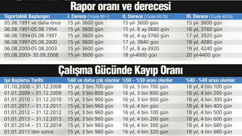 "1990 yılında sağ bacağımı dizüstünden kaybettim. O sırada henüz SSK'lı değildim. İlk SSK girişim 5 Eylül 1994 yılında yapıldı. 1994-2006 yılı arası normal SSK'lı olarak çalıştım. 2006 yılında SSK'lı olarak çalışırken İzmir Defterdarlığı'na sakatlık indirimi için başvurdum. Defterdarlığın sevk ettiği hastane '% 60 oranında sürekli özürlü' raporu verdi ancak defterdarlık bunu % 50 özürlü olarak onayladı. Ancak sizin ekranlarda ve yazılarınızda belirttiğiniz "VERGİ İNDİRİM BELGESİ" almadım. 2006 yılından bugüne kadar 3. derece sakatlık indiriminden yararlanarak çalışıyorum. Bu arada, 2007 yılında kendime araba alırken OTV ve KDV indiriminden yararlanabilmek için yine hastane raporu aldığımda, hastane aynı durum için bana özürlülerin özür tespit oranlarının değiştiğini belirterek bu kez % 36 oranında bir özürlü raporu verdi. Bu raporu araba alırken kullandım. Yani 2006'da % 60 oranında özürlü oranı tespit eden hastane 2007 yılında tamamen aynı uzuv eksikliği ile ilgili bu kez % 36 oranında rapor verdi. Acaba, emekli olurken SGK benden yeni bir özürlü tespit raporu isteyecek mi ve hangi oran göz önüne alınacak? Murat ÖZLÜ