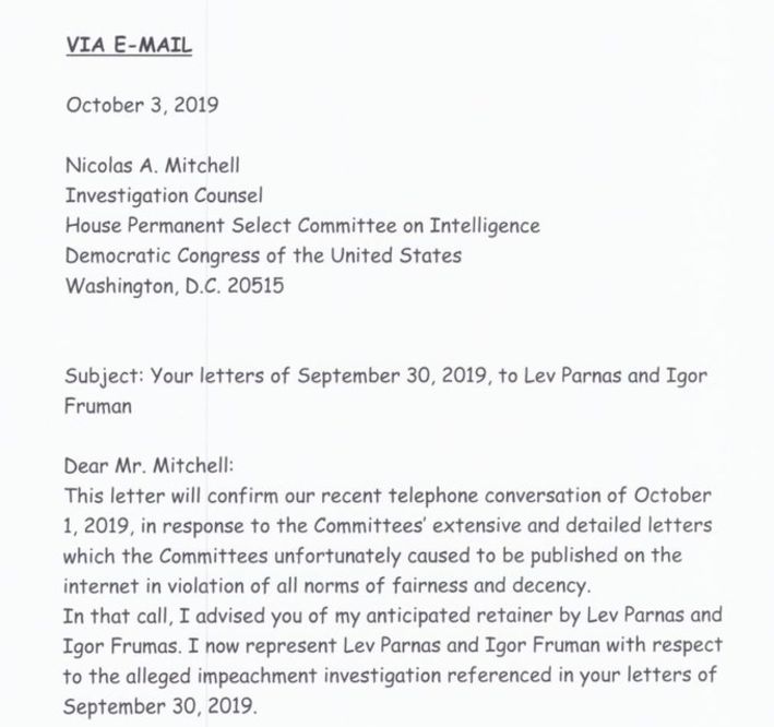 Olay, Trump hakkında azil soruşturmasını ortaklaşa yürüten Temsilciler Meclisi’nin üç komitesinden gelen taleple ilgiliydi. John Dowd, Trump’ı destekleyen derneklere 325 bin dolarlık usulsüz bağışta bulundukları için tutuklanan Lev Parnas ve Igor Fruman adlı iki işadamının avukatıydı. Eski Sovyet göçmeni bu iki şahıs, esrarengiz bir Rus işadamının bağışına aracılık ederek, “seçim kampanyasına dış destek yasağını” çiğnemişti. Ayrıca Trump’ın özel avukatı Rudy Giuliani’nin, Demokrat Joe Biden’ı karalama amaçlı Ukrayna manevralarına karıştıkları da iddia ediliyordu. İşte bu gerekçelerle Kongre komiteleri avukat Dowd’dan müvekkillerinin para transferleriyle ilgili belgeleri talep etti; Parnas ve Fruman’ın komitede ifade vermeleri de isteniyordu.