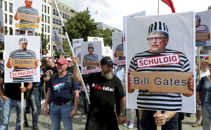 Yeğen Kennedy, Berlin’deki protestoda da aşı düşmanı kontenjanından boy gösterdi; Brandenburg Kapısı’ndan Zafer Sütunu’na uzanan bir kilometrelik yolda binlerce yandaşı vardı. Ancak daha fazlası da vardı. Örneğin Bill Gates’in pandemiye karşı aşı geliştirip kitleleri mikroçiplerle kontrol altına alacağı şeklindeki komplo teorisi. Gates’in dünya imparatorluğu kurmak amacıyla koronavirüsü ürettiği iddiası, pandemi şüphecileri arasında çok yaygın. Kennedy bunu o kadar çok dile getirdi ki, sonunda Gates kendisini sosyal medyada engelledi.