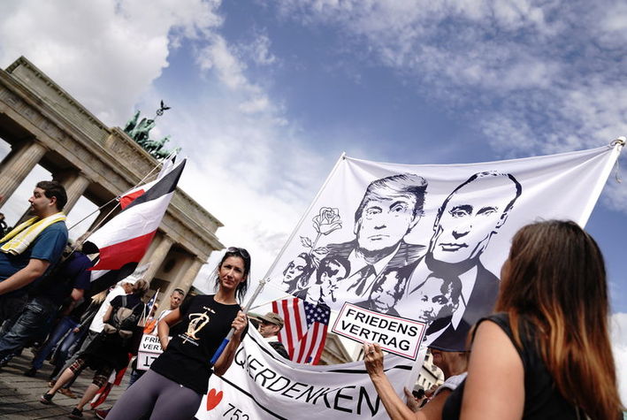 Bazı göstericiler de hala Reich vatandaşı olduğunu zannediyor, Federal Almanya Cumhuriyeti’nin aslında bir limited şirketi olduğunu, Merkel’in de dahil olduğu bir kumpasla çocukların ailelerin elinden alınıp zengin elitlere satılacağını iddia ediyorlardı. Görüntülerde genç bir çift resmen şöyle diyordu: “Komplonun içinde Merkel ile birlikte (Bavyera Başbakanı) Söder de var. Bize sadece Trump ile Putin yardımcı olabilir. Onlar bizim tarafımızda, çok geç olmadan ikisiyle bir anlaşmaya varmamız gerekiyor…”