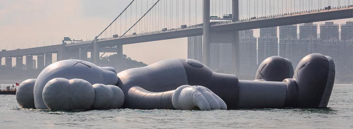 Art Basel Hong Kong bugün sona eriyor. Fuarın şerefine, kongre merkezinin hemen önünde, Hong Kong’un Victoria Limanı’nda gemilerin arasında, geçtiğimiz cumadan beri yüzen bir cisim var: Disney'in ünlü karakteri Mickey Mouse'u andıran, gözleri ‘X’lerden ibaret, 35 metrelik bir dev. KAWS tarafından üretilen ‘Holiday’, şişme anıtsal heykel, sırt üstü suda yatıyor.