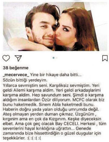 MUSTAFA Ceceli’nin hayranları bu son olayda yıkıldı, büyük yara aldı. Kahroldular. Hele bir tanesi var ki üzülür müsün, ağlar mısın, güler misin belli değil. Milletin telefonlarında, Whatsapp gruplarında dolaşıyor bu hayran mesajı. Mustafa Ceceli hayranı diyor ki: “Yine bir hikâye daha bitti. Sözün bittiği yerdeyim. Yıllarca sevmiştim seni. Karşılıksız sevmiştim. Yeri geldi ailemi karşıma aldım. Yeri geldi arkadaşlarımı karşıma aldım. Hep savundum seni. MCFC olarak biz bunu hak etmedik. Sinem Abla hak etmedi bunu. Haberin doğru ya da yalan olması umurumda değil. Ateş olmayan yerden duman çıkmaz. Üzgünüm, kırgınım ama en çok da kızgınım. Keşke diyeceksin elbet.