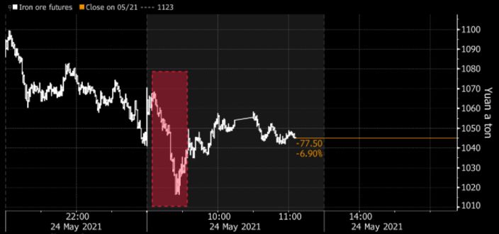 Aşağıda demir cevherinde, Çin uyarısı sonrası düşüş görülüyor.