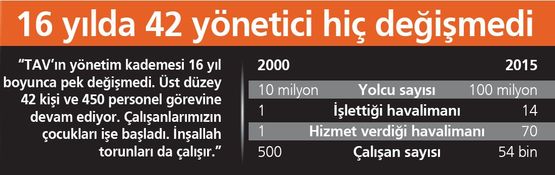 2000 yılında toplam yolcumuz 10 milyondu. Türkiye ve dünyadaki işlettiğimiz 14 havalimanında 2015’te yaklaşık 100 milyon yolcuya hizmet verdik.”