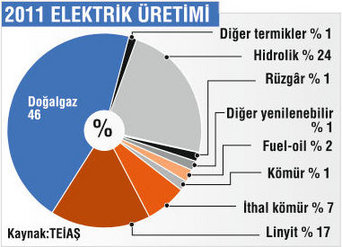 Doğalgazdan elektrik üretiminin payının yüzde 50'lere ulaşması sebebiyle yoğun eleştiriler yaptığımız 2010 yılı epeyce geride kaldı. Büyüyen Türkiye ekonomisi attığı her adımda ihtiyaç duyduğu enerji miktarını da yukarı çekiyor. Enerjiye yön veren otoriteler de en hızlı ve kolay yoldan elektrik temini için doğalgaz santrallarını tercih ediyorlar. Ve maalesef bu eğilim nedeniyle enerji güvenliği açısından karamsar bir tablo ortaya çıkıyor.