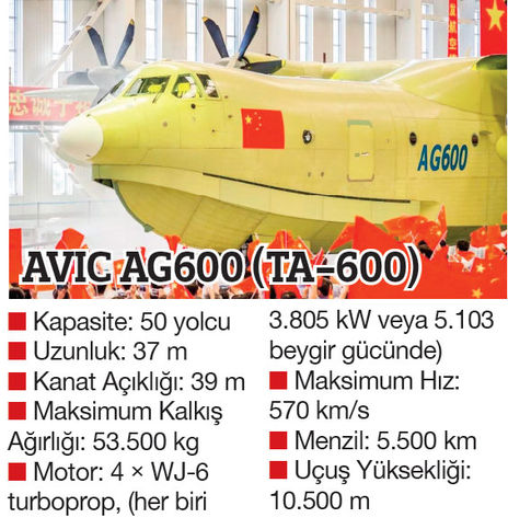 Tarihin tozlu sayfalarında dünyanın en büyük amfibik uçağı olarak Hughes H-4 Hercules (bilinen adıyla Spruce Goose) yer alır. Spruce Goose üretiminin ardından, 2 Kasım 1947’de ilk ve tek uçuşuyla tarihe geçer, ama endüstriyel gelişimi olmadığı için daha büyüğü üretilemez. Ancak dünyanın en büyük amfibik uçağı dendiğinde artık akla Çin’de üretilen ve Boeing 737 büyüklüğündeki AG600 gelecek. Kısa süre önce üretimi tamamlanan ve roll-out yapan AG600, karada ve denizde kesintisiz uçuşlarıyla hizmet vermeye 2016 sonu itibarıyla başlamaya hazırlanıyor.
