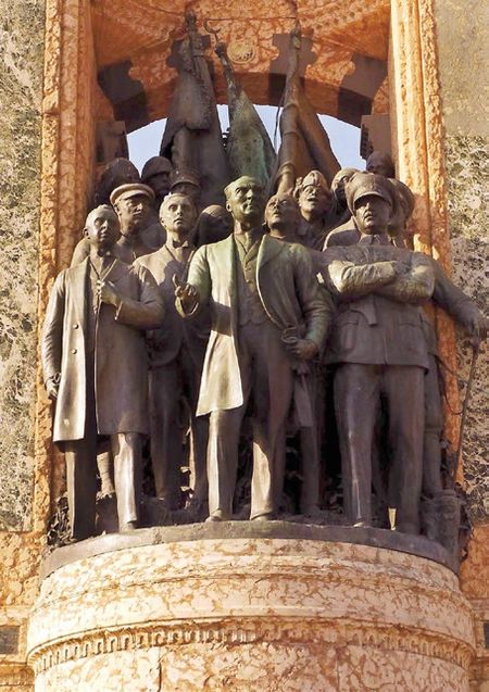 Taksim Anıtı’ndaki Rus generaller: Mustafa Kemal’in solunda Frunze, onun arka solunda da Voroşilov var.