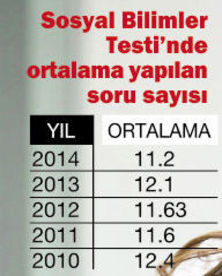 Yükseköğretime Geçiş Sınavı’nda (YGS) gençlerin en başarılı oldukları test Türkçe Testi. 40 sorunun yer aldığı bu testin geçen yıl yapılma ortalaması tüm adaylar için 18.7 oldu. 2013 yılında bu oran, her biri 144 kelimeyi bulan uzun paragraflı sorular yüzünden 16.8’e kadar gerilemişti. Tüm testlerde olduğu gibi Türkçe Testi’nde de başarı oranı giderek düşüyor. 2011 yılında 40 soruluk testte ortalama 21.9 soru çözülüyordu.