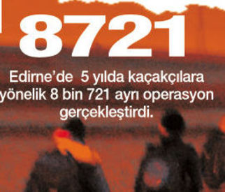 EDİRNE’de İl Jandarma Komutanlığı, kentte yaygın olarak yürüyen yasadışı göçmen kaçakçılığı faaliyetlerine karşın etkili bir mücadele yürütüyor. Jandarma birimleri, son 5 yılda kaçakçılara yönelik 8 bin 721 ayrı operasyon gerçekleştirdi. Sınırı geçmeye çalışırken yakalanan göçmenlerin uyruklarına göre yürüyen prosedür sınır dışı edilmeye kadar varıyor. Ancak Suriye uyruklular için bu durum çok geçerli değil. Geçici sığınma statüsü sahibi Suriyelilerin üçüncü bir ülkeye çıkışları yasak olsa da sınır geçme teşebbüsleri sırasında yakalandıklarında herhangi bir cezai yaptırım uygulanmıyor. Edirne’de son 5 yılda jandarma birimleri tarafından göçmen kaçakçılarına yönelik operasyonlar kapsamında bin 21 insan taciri gözaltına alındı. Gözaltına alınan kaçakçıların büyük bölümü ise çıkarıldıkları mahkemelerce tutuklandı. Ancak yasa gereği pek çoğu birkaç ay cezaevinde kaldıktan sonra tekrar kaçakçılık yapmaya devam ediyor.