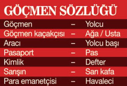 SEKTÖR, kendi jargonunu da yaratmış durumda. Göçmen kaçakçılığı yapan organizasyonun en tepesindeki kişiye ‘ağa’ veya ‘usta’ deniliyor. Göçmenden ise ‘yolcu’ diye bahsediliyor. Yolcuları kaynak ülkeden geçiş ülkesine getiren veya buradan hedef ülkeye ulaşması için ‘usta’ ile buluşturan aracılara ise ‘yolcu başı’ deniliyor. Yolcu başı her yolcu başına 100 ile bin dolar arasında değişen miktarda para alıyor. Usta ise yolcunun kullanacağı yola göre ücret alıyor. Havayoluyla Avrupa’ya gitmenin bedeli 10 -12 bin Euro... Karayolu ile 8 bin Euro ödeyerek gidecek olan bir yolcu denizyolu ile İtalya’ya gitmek isterse ödeyeceği ücret 4 bin 500 Euro oluyor. Turizm firmaları gibi çalışan göçmen kaçakçılarının yanı sıra bu işten vurgun yapıp kısa sürede çok para kazanmak isteyen kişiler de göçmen kaçakçılığı yapıyor.
