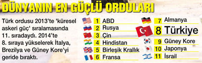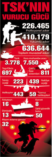 İSKOÇYA’nın St. Andrews Üniversitesi’nde yapılan araştırmaya göre Türkiye, ‘küresel askeri güç’ sıralamasında 2014 yılı itibarıyla dünya genelinde 8. sırada yer alıyor. TSK’nın sahip olduğu askeri gücün önemli bölümünü ise Kara Kuvvetleri oluşturuyor. Bölgemizdeki krizlerin ve belirsizlik ortamının sürmesine paralel olarak, önümüzdeki dönemde de her türlü harbe karşı Kara Kuvvetleri’nin hazırlık seviyesinin sürekli yüksek düzeyde tutulması hedefleniyor. Bu hedef, kriz bölgelerine hızla ve etkin şekilde müdahale edebilen ‘esnek yapı’ prensibi içerisinde hayata geçirilecek.