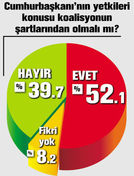 CUMHURBAŞKANI’NIN YETKİLERİ KOALİSYONUN ŞARTI OLMALI: % 52.1