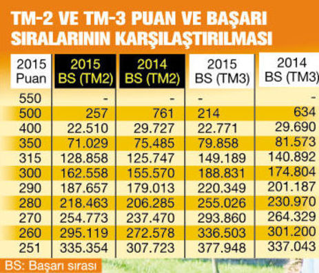 BU yılın bir başka değişikliği de hukuk fakültelerinin TM-2 ile değil TM-3 puan türü ile öğrenci alması oldu. Bu yıl öğrenciler tercihlerinde TM-3 puanlarını ve başarı sıralarını kullanacak. Ancak puan türü değişikliği yüzünden kılavuzda geçen yıl hukuk fakültelerinin en son hangi başarı sırasından ve puanından öğrenci aldığına ilişkin bilgi de yer almadı. Oysa öğrenciler tercih yaparken 1 yıl önce bölümlerin aldığı öğrencilerin başarı sıralarını dikkate alıyor. Bu yüzden geçen yıl hukuk fakültelerinin hangi başarı sırasından öğrenci aldığını bulmanız gerekiyor.