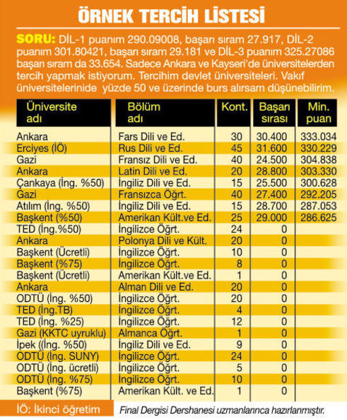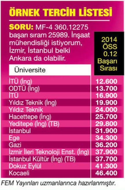 Başarı sıranızı dikkate alın, açıkta kalmamak için geniş bir aralıktan tercih yapın.
