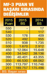 Başta tıp ve mühendislikler olmak üzere MF puanlarıyla öğrenci alacak programların kontenjanı 150 bin 428 oldu. 2014 yılında bu puan türünün kontenjanı 148 bin 742 olmuştu.