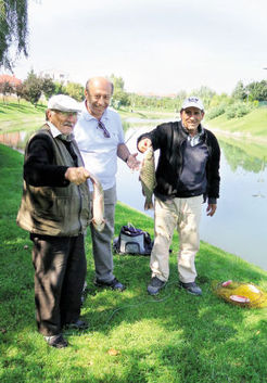 Emekli Mehmet Kınay, Latif Gülşen ile Musa Okşit her sabah oltalarını alıp kentin ortasındaki parka gelip balık avlıyor.