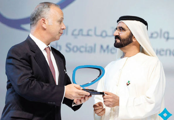 Anla’ manasına gelen Nafham’ın kurucusu Ahmed Alfi, Dubai Emiri Muhammed bin Raşid el-Maktum’dan, Arap sosyal medyasının en ilham verici insanı ödülünü alırken.