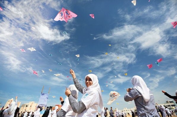 Gazze’de düzenlenen uçurtma festivalinden manzaralar. Girişimciliğin gelişmesinin Filistin’in refahına ve barışa yapacağı katkılarla, bomba ve yıkım görüntülerinin yerini böyle manzaralar alabilir.