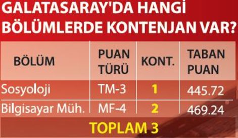 Bu programlar da ABD üniversiteleriyle yapılan anlaşmalara göre çift diploma veriyor. Öğrenciler 2 yıl ABD’deki üniversitede okuyor ve bunun için de öğrenim ücretli oluyor. ODTÜ’nün de KKTC’deki kampusunda ücretli programlarının 73’ü boş. Yine boş kontenjanın olduğu üniversitelerden biri de Galatasaray Üniversitesi. Bu üniversitede de sosyoloji ve mühendislik bölümlerinde toplam 3 kontenjan bulunuyor.