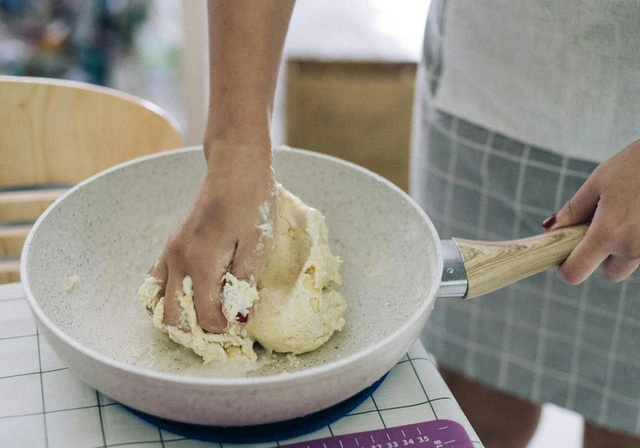 Eğer bir hamur yoğuruyorsanız ve hamur tezgaha yapışıyorsa bunun yerine yapışmaz bir tavada yoğurmayı deneyebilirsiniz.