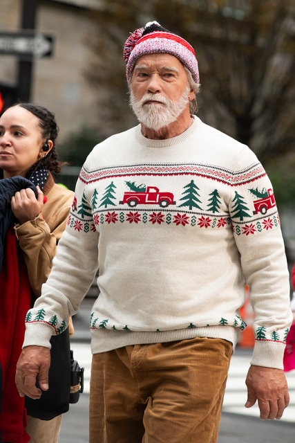 Arnold Schwarzenegger, başrolde yer aldığı 'The Man With The Bag' filminin New York'taki setinde ilk kez görüntülendi. Ünlü oyuncu, bembeyaz saç ve sakallarıyla, yılbaşı temalı kazağı giymiş haliyle görüntülendi.
