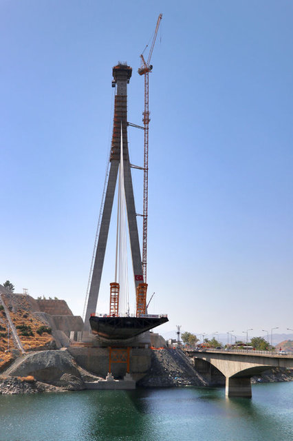 Köprünün iki aksında bulunan 168,5 metrelik pilonun 160 metrelik kısmı yapıldı.